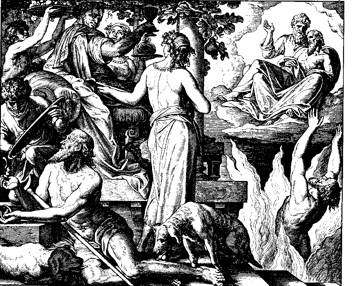 Unterwelt, wo er qualvolle Schmerzen litt, blickte er auf und sah von Weitem